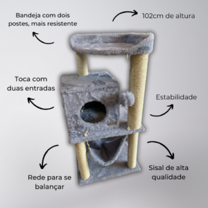O acabamento da flor é acolchoado e fofinho, trazendo mais conforto e um toque decorativo encantador para o ambiente. Além de funcional, é uma peça que se destaca na decoração, deixando sua casa ainda mais alegre e estilosa. A folha em formato de cesto cria um cantinho aconchegante que os gatos adoram para descansar. Sua estrutura conta com um poste robusto de 100 mm, o maior tubo que trabalhamos, desenvolvido para garantir máxima resistência e durabilidade, minimizando qualquer risco de quebra.